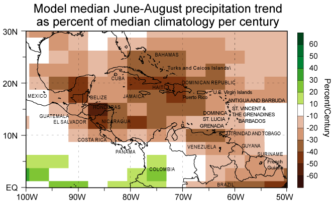 Carribean precipitation change from an ensemble of ten models |