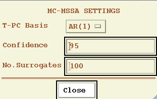 MSSA options to be specified are the Window Length, the type of Significance