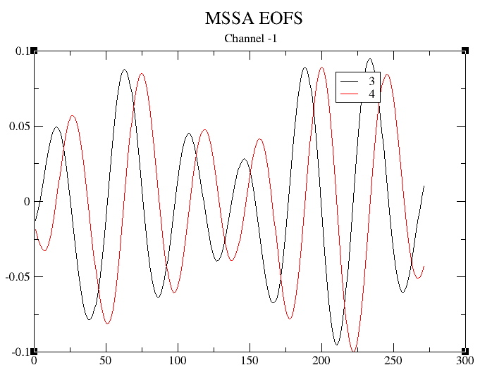We can check that ST-EOFs of oscillatory MSSA pairs are indeed in phase quadrature using Plot Options pull-down menu: